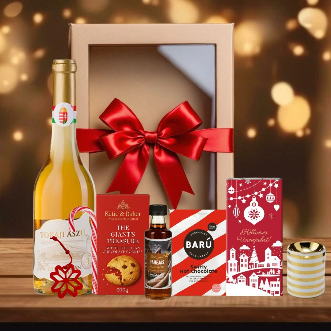 Azonnali karácsonyi ajándékcsomag megoldást kínálunk Önnek az Édes Karácsonyi Varázs csomagunkkal, mely gondosan válogatott finomságokat tartalmaz a tökéletes ünnepi hangulat megteremtéséhez. Fedezze fel az ünnepi ízek harmóniáját ebben az elegáns összeállításban, amely garantáltan mosolyt csal majd szerettei arcára. Rendelje meg most, és varázsoljon felejthetetlen karácsonyt ezzel a különleges ajándékkal!