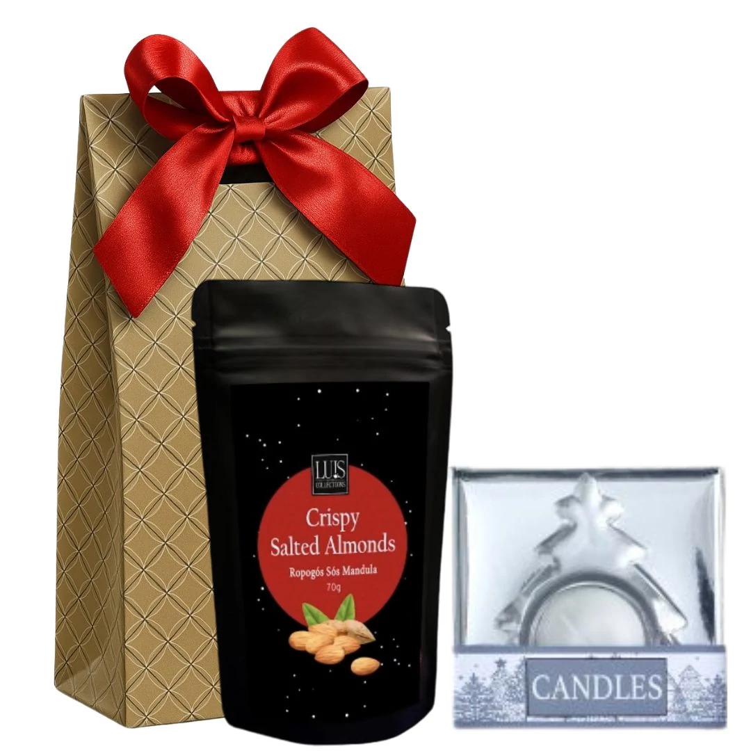 Sós mandula: Sós, pörkölt mandula ünnepi csomagolásban
