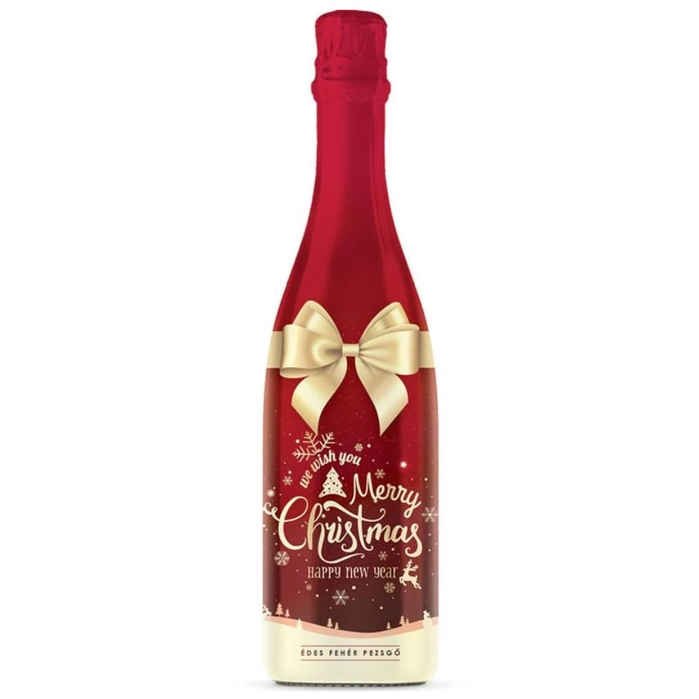 Merry Christmas édes fehér pezsgő: "We wish you a merry christmas and a happy new year" feliratú édes fehér pezsgő a boldog koccintásokért! Ünnepi pezsgés a palackban,