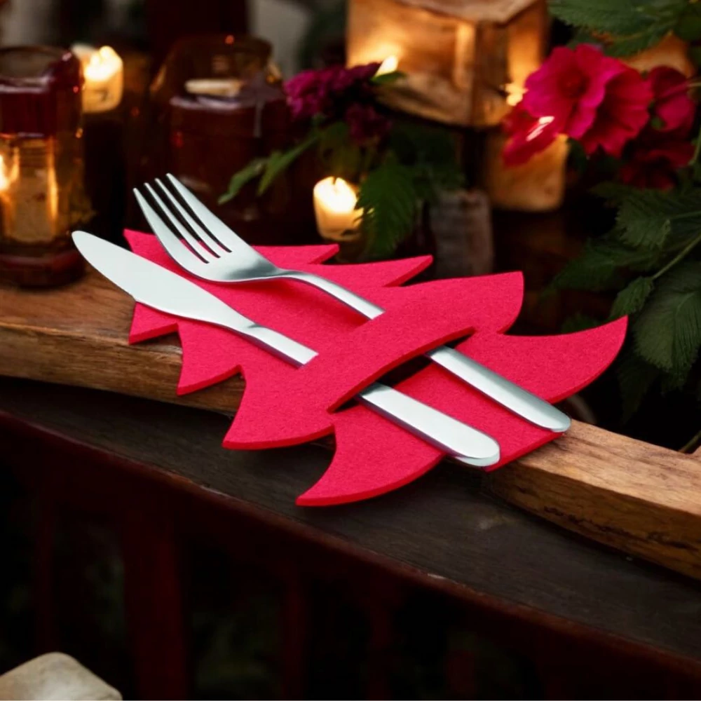 Ünnepi filc evőeszköztartó: Varázsoljon az ünnepi asztalra is igazi karácsonyi meghitt hangulatot kiegészítőinkkel.